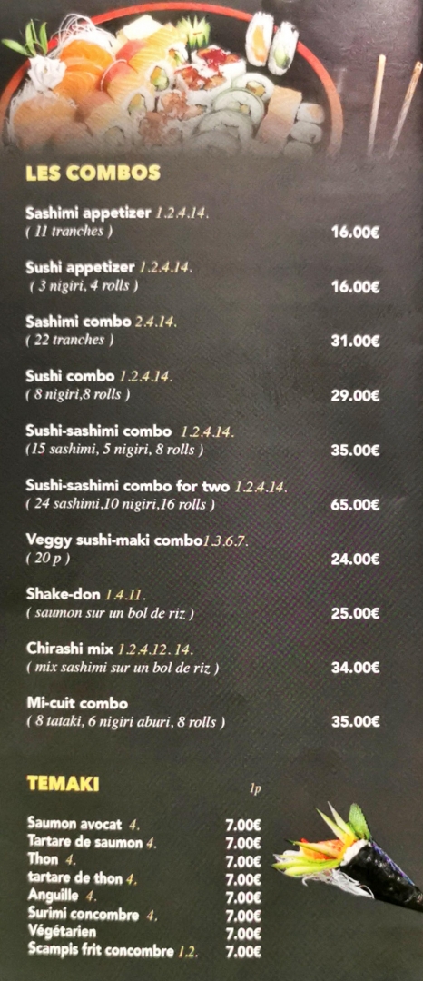 Voici la carte proposée à la livraison ou à emporter par ce restaurant :