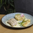 Jeudi : Cabillaud, écrasé de pommes de terre, carottes & crème aux herbes.