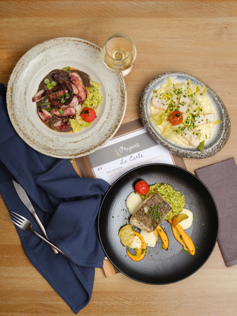Le restaurant "Origine" vous accueille dans une ambiance chaleureuse pour déguster une cuisine d'inspiration locale, saine et gourmande.