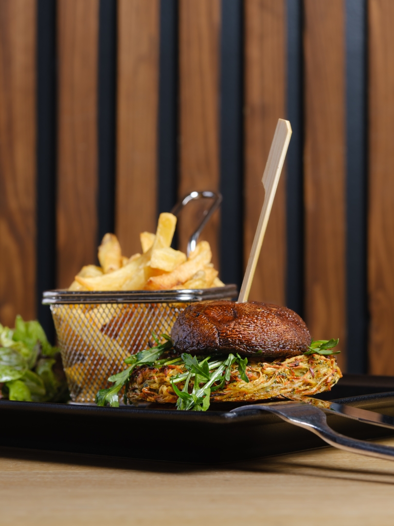 Vendredi : Burger mettwurst, choucroute, cornichons, moutarde, frites & salade.